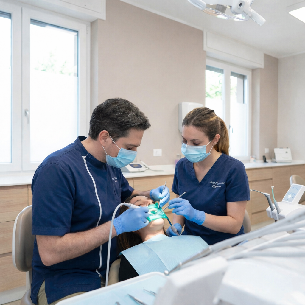 La procedura viene eseguita da odontoiatri e igienisti specializzati, con strumenti manuali, ultrasuoni e tecnologie moderne che permettono di lavorare in modo preciso e poco traumatico.